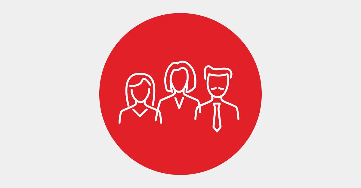 Grafik: 3D-Illustration eines Mannes im schwarzen Anzug mit roter Krawatte, der lächelnd eine Hand ausstreckt und eine einladende Präsentationsgeste macht.